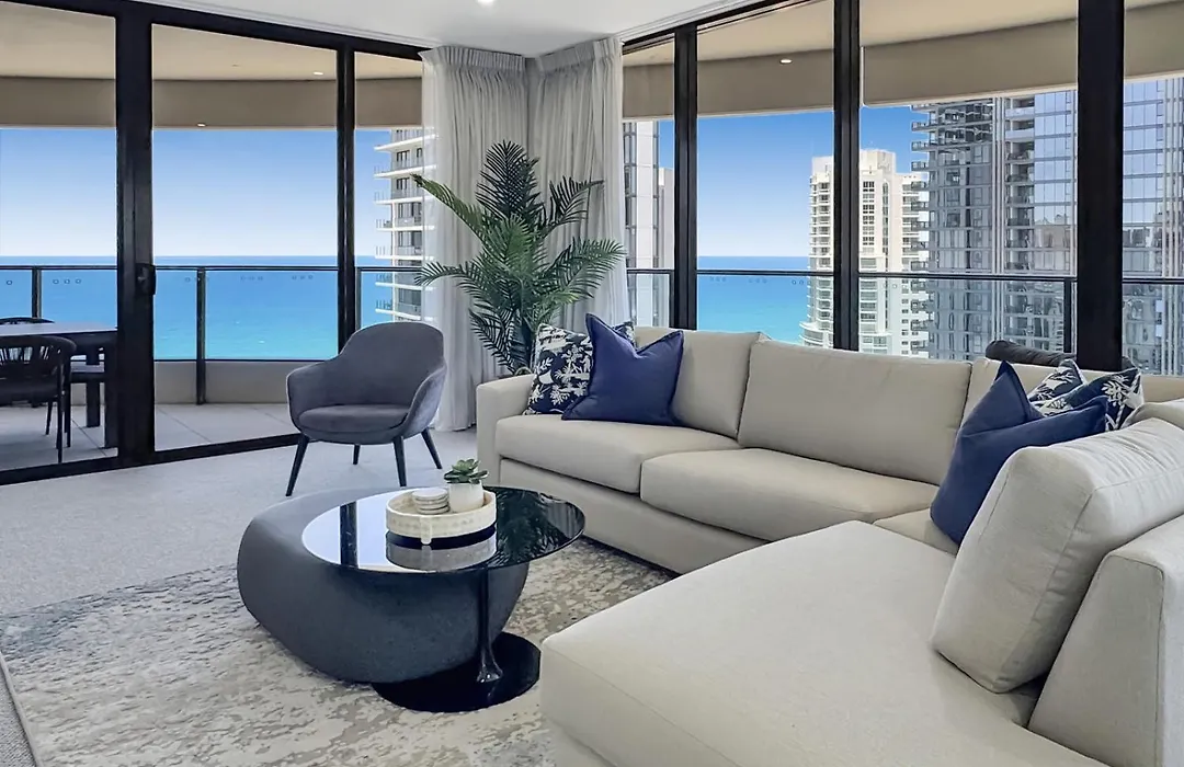 In der Ferienwohnung Oceanview Luxury Escape Oracle Tower 2 Level 24 stehen Gästen ein Balkon und ein Ankleidebereich mit einer Klimaanlage zur Verfügung. Diese Unterkünfte bietet zudem einen Haartrockner und Badelaken im Badezimmer für zusätzlichen Komfort. Außerdem gibt es hier eine begehbare Dusche und eine getrennte Toilette.
